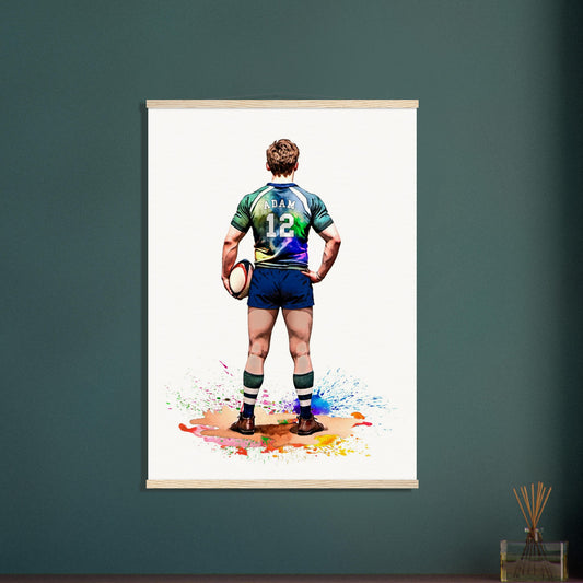Personalised Rugby Player Poster | Museum-Grade Print with Wooden Hanger for Men