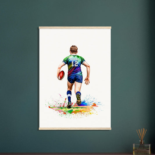 Personalised Rugby Player Poster Museum-Grade Print with Wooden Hanger for Boys